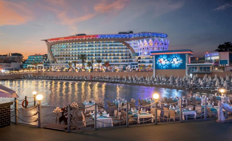 Основен ресторант, 6 а-ла-карт ресторанта (срещу заплащане), сладкарница, 7 бара, дискотека, 3 открити и 1 закрит басейн, 3 водни пързалки, СПА център, магазини, 2 конферентни зали. ЗА ДЕЦАТА: Открит и закрит детски басейн, мини клуб (4-12г.), детска анимация, мини кино, мини диско. БЕЗПЛАТНИ УСЛУГИ: Сауна, турска баня, парна баня, фитнес, аеробика, тенис на маса, 2 тенис корта, дартс, боча, анимация, жива музика, тематични партита, Wi-Fi (в Лоби). ПЛАТЕНИ УСЛУГИ: Масаж, пилинг, фризьор, химическо чистене, лекар, детегледачка, осветление за тенис корт, билярд, боулинг, наем на велосипеди, водни спортове, интернет кафе, рент - а кар. ПЛАЖ: Собствен, платформа (4500 m2). Чадъри, шезлонги и матраци на плажа и при басейна - безплатно. Плажни кърпи – срещу депозит.