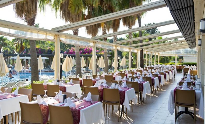 Хотелът разполага с основен ресторант, 3 а-ла-карт ресторанта (италиански, османски и средиземноморски- 1 посещение в седмицата), 3 бара, плувен басейн, вътрешен басейн, водни пързалки, СПА център, сауна, парна баня, турска баня, масажи, анимация, тенис на корт, тенис на маса, аеробика, водни спортове, дартс, WI-FI. За децата: детски басейн(външен и вътрешен), детски водни пързалки, мини клуб.
