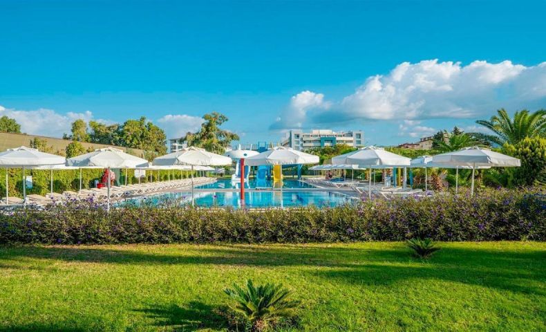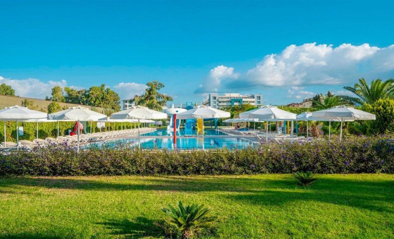 Timo Deluxe Resort 5* е с площ от 13 067 кв.м. Състои се от една 6-етажна сграда. Разполага със собствен пясъчен плаж – на разстояние 75м. от територията на хотела. Предлага 3 басейна, малък аквапарк с 3 пързалки, безплатен паркинг, безплатен wi-fi на територията на хотела, фитнес център и всичко необходимо за една пълноценна ваканция.