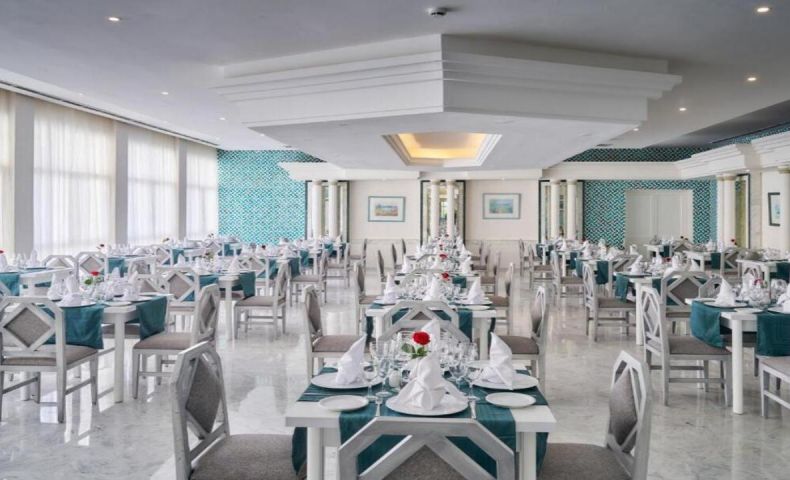 Хотелът разполага с основен ресторант, 1 а-ла-карт ресторант (може да се ползва безплатно веднъж за 7 дневен престой с предварителна резервация), 6 барa, дискотека (напитките са платени), 2 открити басейна, закрит басейн, водни пързалки, СПА център, магазини, анимация, музика на живо, 6 конферентни зали, паркинг. Базата на изхранване е All inclisive - закуска, обяд и вечеря на шведска маса, междинни хранения; местни алкохолни и безалкохолни напитки. Комплексът притежава собствен пяъсен плаж. Чадъри, шезлонги и плажни кърпи на плажа и при басейна се ползват безплатно от гостите. За най-малките посетители са налични детски басейн, с 8 водни пързалки, мини клуб (4 -12 г.), мини дискотека. Безплатен Wi-Fi има на лоби бара и на рецепция.