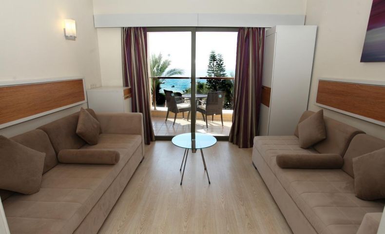 Двойна стая – 28 м2, максимално настаняване 2 възрастни + 1 дете/3 възрастни, спалня или отделни легла, душ/вана, сейф, балкон с изглед към морето.