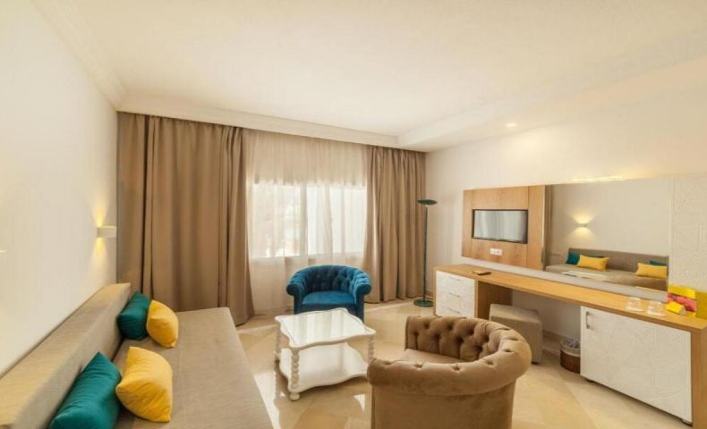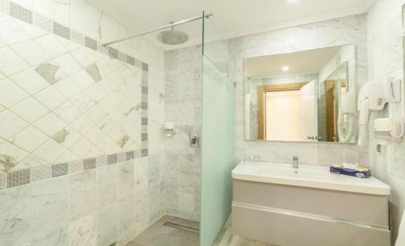 - Фамилна стая - 76 м2, максимално настаняване 4 възрастни + 1 дете, спалня + разтегателн диван, климатик, сейф, мини бар, Wi-Fi, мини бар, вана и душ, балкон.