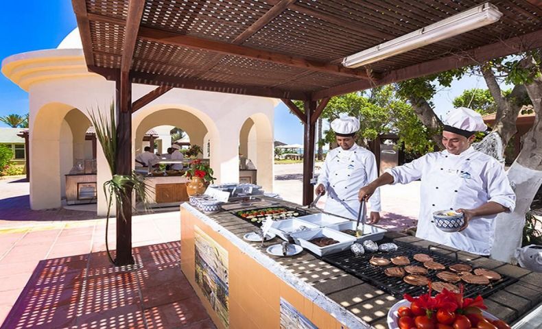 Изхранването е закуска, обяд и вечеря на блок маса с местна и интернационална кухня. Има възможност и за късна континентална закуска на плажа от 10.00 ч. Следобедна закуска се сервира от 15.00 ч. до 17.00 ч. Алкохолни и безалкохолни напитки се сервират от 10.00 ч до 0.00 ч.