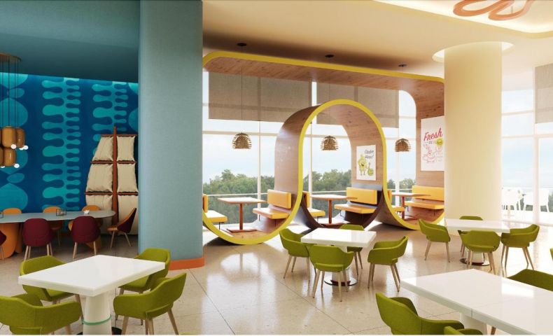 Основен ресторант, лоби бар, ресторант Character Dining (в ресторанта се организират шоу програми с участието на герои на Nickelodeon - срещу заплащане), снек лаундж и бар (срещу заплащане), витамин бар (срещу заплащане), открит басейн (отопляем в определени от хотела периоди), аквапарк, СПА център.