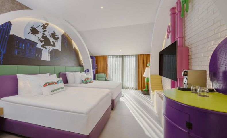 Хотелът разполага с общо 238 тематични стаи в, разположени в 7-етажна основна сграда, от които  211 Themed Deluxe Room (49-55 м2), Themed Deluxe Room Connection (2 Deluxe Room със свързваща врата помежду им – 110 м2), 21 Themed Deluxe Suite (1 спалня, 1 дневна, 2 бани – 98-110 м2), 4 Themed Junior Suite (1 спалня, 1 дневна, 1 баня - 98 м2), 1 Star Trek Iconic Suite (с тема Стар Трек, 2 отделни спални, 1 дневна, 1 стая за игри, 2 бани - 245 м2), 1 Legendary Nick Suite (с тема Nickelodeon, 2 отделни спални, 1 дневна, 1 стая за игри, 3 бани - 350 м2).