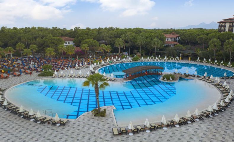Основен ресторант, 5 а-ла-карт ресторанта (турски, италиански, рибен /за вечеря, 1 посещение за 7 дни безплатно в един от трите/, снек и бургер /за обяд/, 10 бара, 4 открити басейна, включително един с полуолимпийски размери, закрит басейн (отопляем за зимния период), Аквапарк за малки и големи, Спа център, магазини, пералня, 4 конферентни зали. За децата: детски клубове: 2 (мини-клуб 4-11г., джуниър-клуб 12-17г.), детски басейн, детска площадка, детски бюфет.