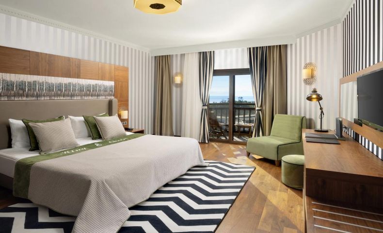 Хотелът разполага с 455 стаи, 278 в основната сграда, с изглед към морето, басейна и градината.