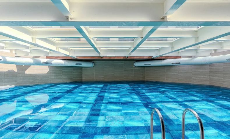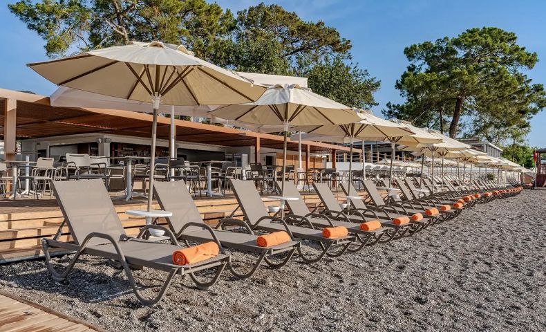 Собствен, пясъчно – чакълест, притежаващ сертификат „Син флаг“, с дължина на плажната ивица 200м. Чадъри, шезлонги и плажни кърпи на плажа и при басейна – безплатно.