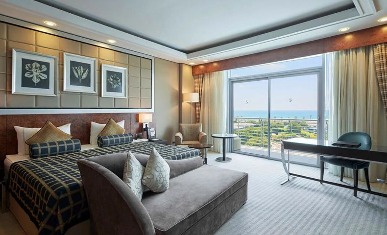 Хотелът разполага общо с 502 стандартни стаи и 63 фамилни стаи. Всички стаи са оборудвани с: климатик, сателитна телевизия, телефон, баня с душ или вана, сешоар, минибар (безплатно), балкон, интернет. Почистване на стаите – всеки ден.
