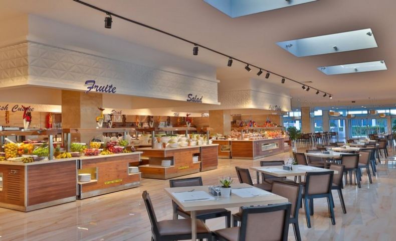 Основен ресторант, 2 а-ла-карт ресторанта (турски, средиземноморски – с предварителна резервация, срещу заплащане), снек бар (24 ч), 7 бара,