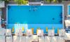 - Шезлонги и чадъри край басейна