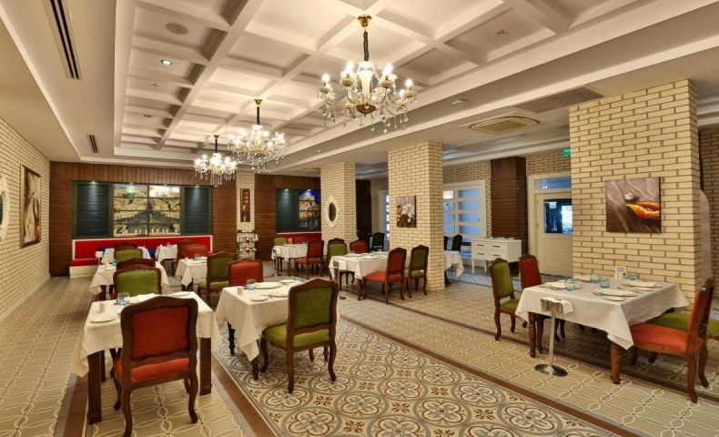 Основен ресторант, 5 a - лa - карт ресторанта ( по едно безплатно посещение по време на престоя ), 7 бара, магазини, Интернет - кафе, безжичен интернет на територията на хотела ( безплатно ), 2 открити басейна, закрит басейн, аква парк, 5 водни пързалки. За децата: мини клуб(4-12г.), 2 детски басейна. Безплатни услуги: турска баня, сауна, парна баня, джакузи, тенис корт, баскетбол, плажен волейбол, фитнес, тенис на маса, водна топка, водна аеробика, дартс, мини голф, кино. Платени услуги: масаж, пилинг, билярд, боулинг, видео игри, джага, осветление на тенис корта, тенис ракети и топки под наем, кану, водно колело, сърф (с лиценз), голф, водни ски, банан, фризьорски салон, СПА-център