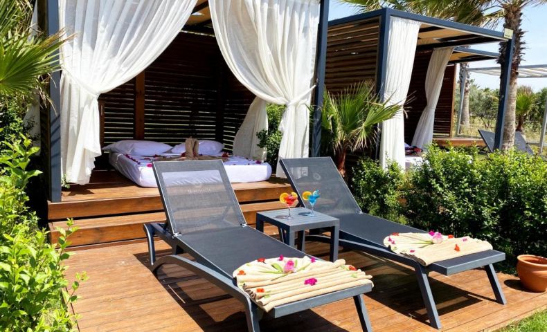 За младоженци: Романтична декорация на стаята, плодове, десерт, бутилка пенливо вино, 1 закуска в стаята в предпочитан ден, 1 безплатно посещение на а-ла-карт ресторант, плажна кабана (при наличност).