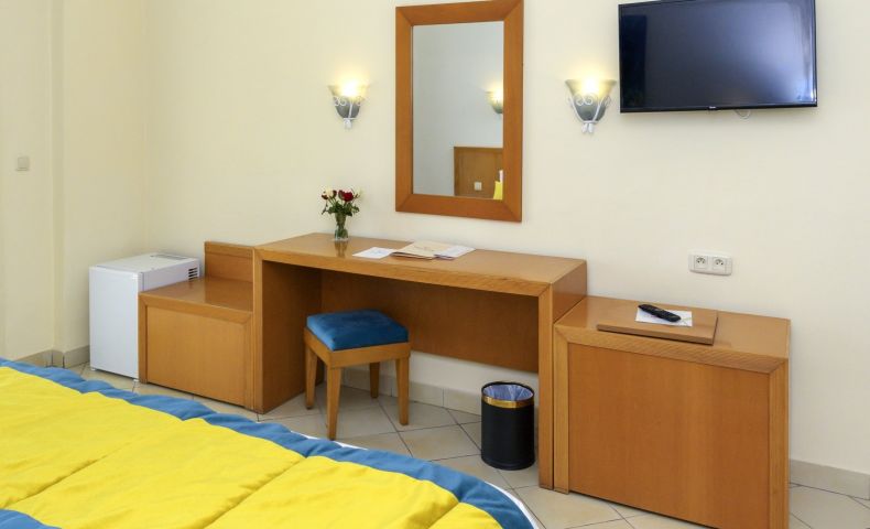 Хотелът разполага с 233 стаи, разположени в основна сграда с асансьор, от които Standard Room (24 - 32 кв.м) за до 4 човека, Sea View Room (24 -28 кв.м.). Всички стаи са оборудвани с климатик, телевизор, телефон, сейф (платен), баня с душ/ вана, сешоар, балкон или тераса, мини бар (платено, при поискване), тоалетни принадлежности. Почистване на стаите - всеки ден.