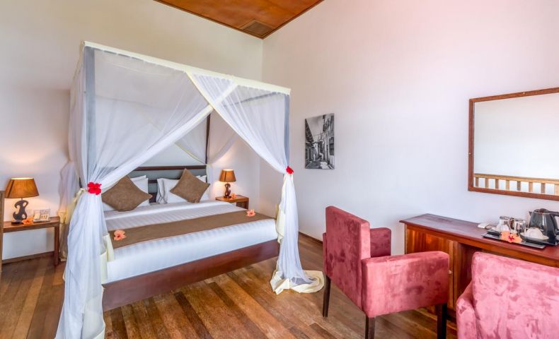 Хотелът предлага следните видове настаняване: Deluxe Ocean Room 40 кв.м, Deluxe Ocean Suite, Superior Garden Room, Standard Garden Room 70 кв.м, Superior Pool View Room 50 кв.м, Villas. Стаите разполагат с красиви високи тавани от дърво, мраморен под и френски прозорци с гледка градина или море. Всички стаи са оборудвани с климатик, телевизор с плосък екран, телефон, баня с душ, сешоар, минибар (платен), сейф, бюро, сет за кафе и чай, балкон или тераса, Wi-Fi (платен).