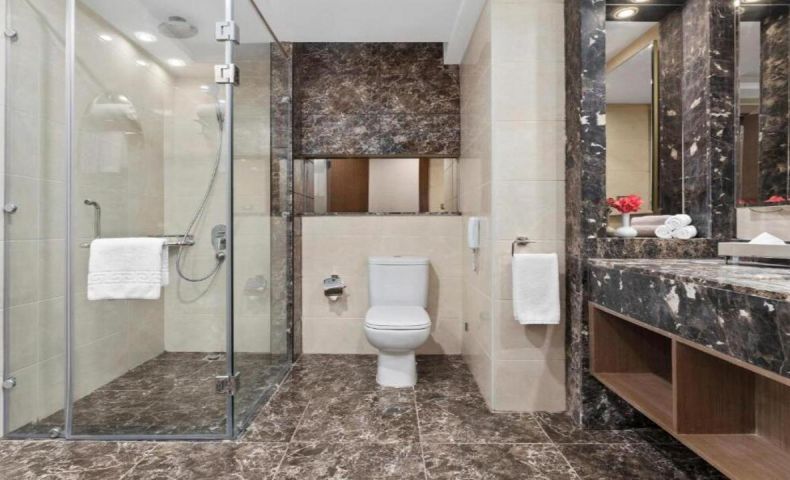 • баня с душ или вана, сешоар и козметика
