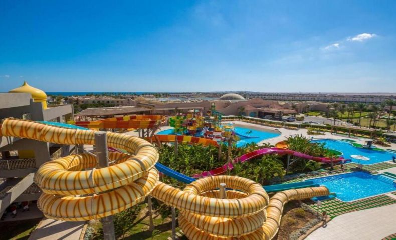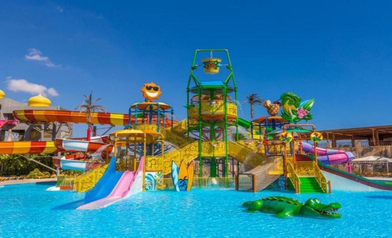 Комплексът предлага разнообразие от услуги и съоръжения, включително просторна градина, открити басейни, водни пързалки, основен ресторант, няколко бара, амфитеатър за анимация, тенис корт, мини голф и магазини. Подходящ е както за семейна почивка, така и за двойки.