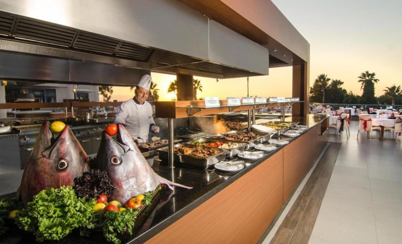 Основен ресторант, 3 а-ла-карт ресторанта (рибен, отомански и италиански - с предварителна резервация, едно безплатно посещение на един от тях, в периода от 01.06-15.09), 5 бара, сладкарница, 2 открити басейна, СПА център, дискотека, магазини.