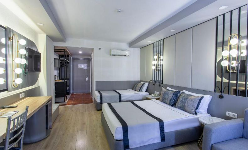 Хотелът се намира на 110 км. от центъра на гр.Анталия, на 100 км. от летище Анталия, на 17км. от гр.Алания, на брега на морето. Построен през 2011 г. с обща площ от 38 500 м2.