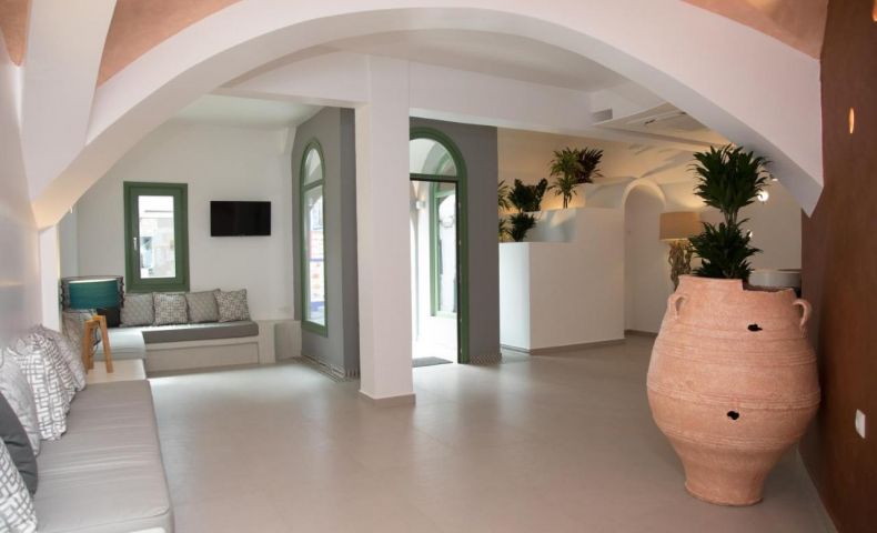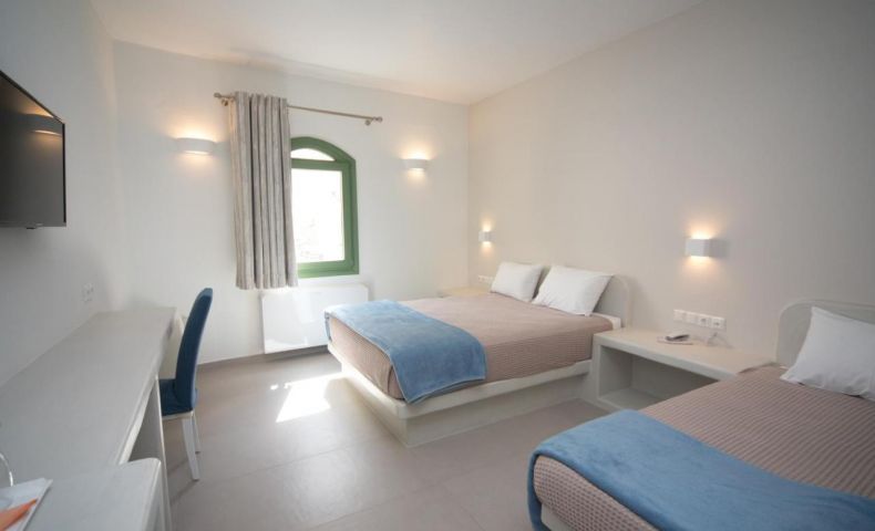 Малък хотел, построен в класически стил, в центъра на град Фира, на централния площад. Хотелът работи целогодишно и предлага комфортно настаняване, топла и уютна атмосфера,на 6 км от летището и на 11 км от пристанището.