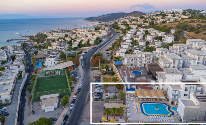 Намира се на 37 км от летище Бодрум, на 3 км от центъра на Бодрум, на 1 км от центъра на Гюмбет, на 400 от брега на морето. Построен 1995 г., на обща площ 2270 м².