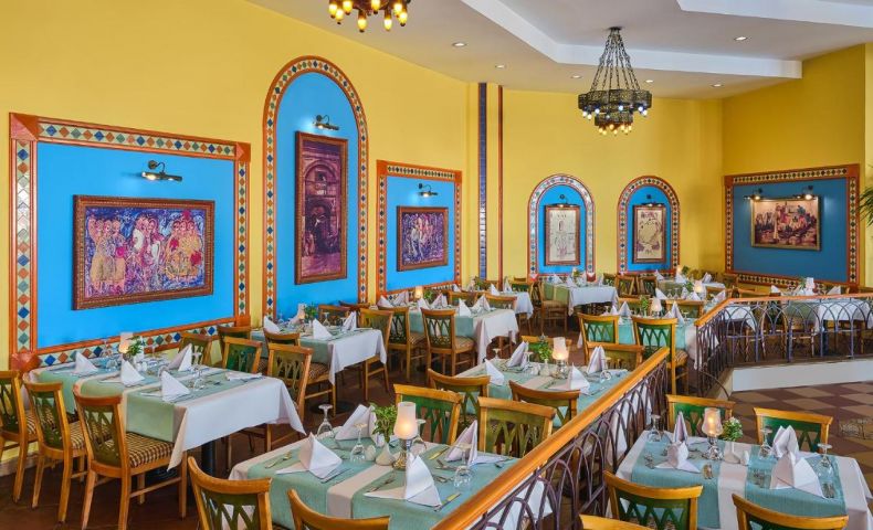 Основен ресторант, 3 а-ла-карт ресторанта (рибен, мексикански, барбекю –1 безплатно посещение на 1 от ресторантите при минимум 7 нощувки), 5 бара (1 от които 24 часа), 3 открити басейна, 5 водни пързалки, СПА център, магазини.
