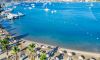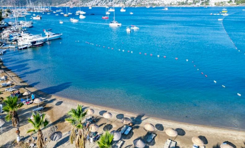 Собствен, пясъчно - чакълест. Чадъри, шезлонги и плажни кърпи на плажа и при басейна - безплатно.