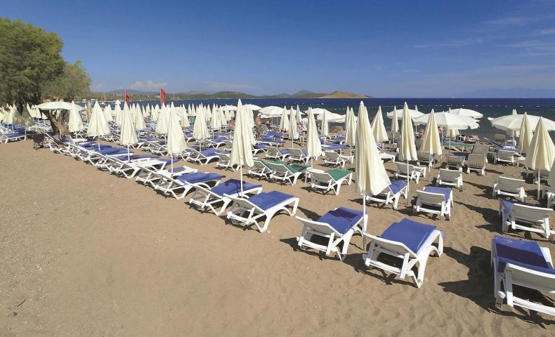 Собствен, пясъчно - чакълест. Чадъри, шезлонги на плажа и при басейна – безплатно. Плажни кърпи - срещу депозит.