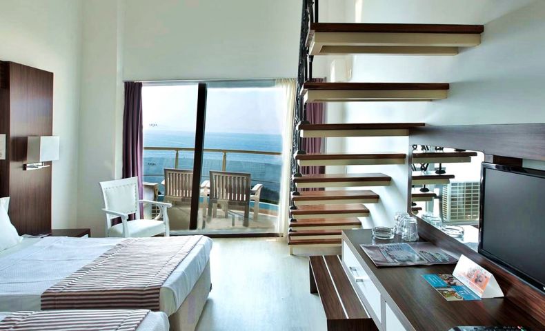 Хотелът разполага 137 стаи, от които 127 стандартни (103 с изглед море и 24 с изглед градина, 20-24 м²), 8 дуплекс фамилни (2 единични легла на долния етаж и спалня на горния етаж, без свързваща врата, 25-26 м²), 1 суит и 1 disabled (пригоденa за хора с ограничена подвижност - 30 м²). Всички стаи са оборудвани с климатик, телевизор, телефон, баня с душ/вана, сешоар, минибар, сейф (безплатен), балкон.