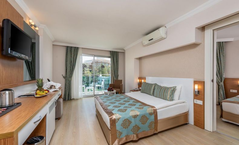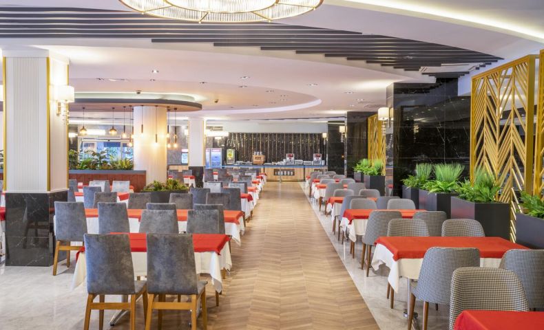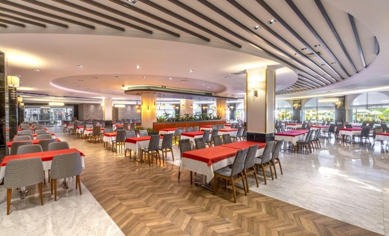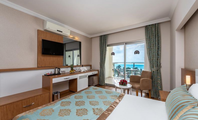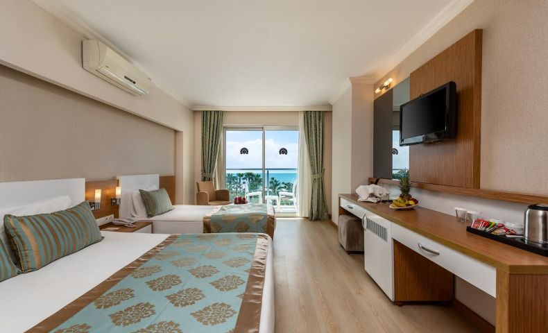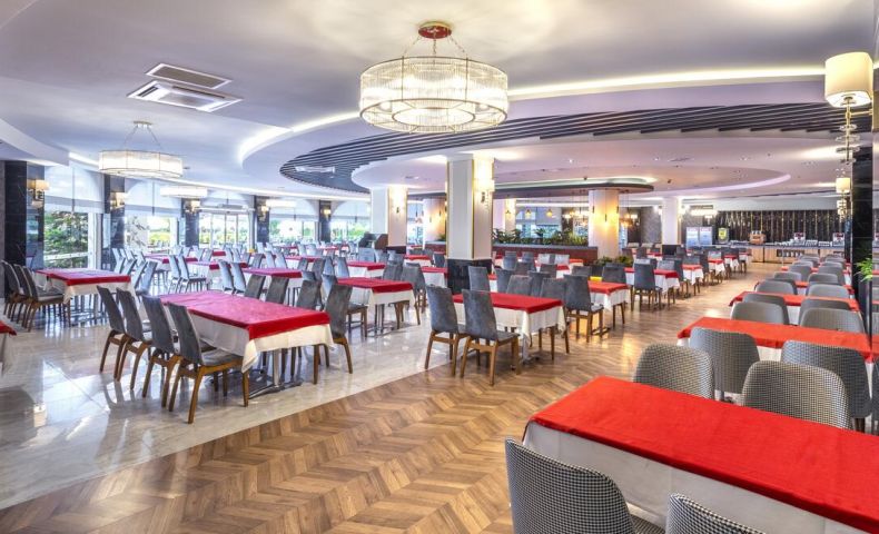 Основният корпус Hotel е построен в 2011 г., корпус Anex - през 1993 г., последно реновиран през 2011 г., обща площ 10 000 м2,. Състои се от 7-етажен основен корпус Hotel и един 7-етажен корпус, 155 standard room (макс. 2+2 чов., 32 м2)q 65 economy room (с изглед към градината или пътя, макс. 2+2 чов., 32 м2), Anex - 96 anex room (макс. 2+1 чов., 18 м2)., основен ресторант, 2 открити басейна, закрит басейн, 5 бара, лекар на повикване, фризьорски салон, магазини, пералня, 2 конферентни зали (за 100-400 чов.) БЕЗПЛАТНИ - турска баня, сауна, фитнес зала, аеробика, водна гимнастика, плажен волейбол, тенис на маса, дартс, тенис - корт с твърдо покритие, анимационни програми, билярд, дискотека (вход), безжичен Интернет (на лоби) ПЛАТЕНИ – масаж, джакузи, осветление на тенис-корта, наем на ракети и топки за тенис, водни видове спорт, интернет-кафе. Плаж - собствен, пясък. Бар на плажа - безплатно. На басейна и на плажа: чадъри, шезлонги, матраци – безплатно. Плажни кърпи :срещу депозит.