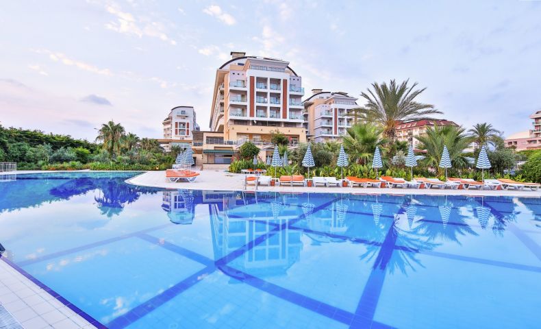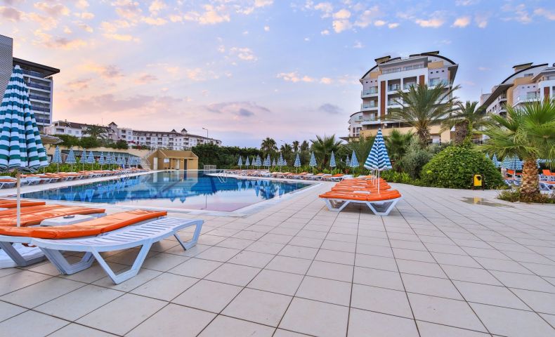 Намира се на 12 км. от центъра на Алания, на 100 км. от летището , на 50 м. през път се стига до собствен плаж.