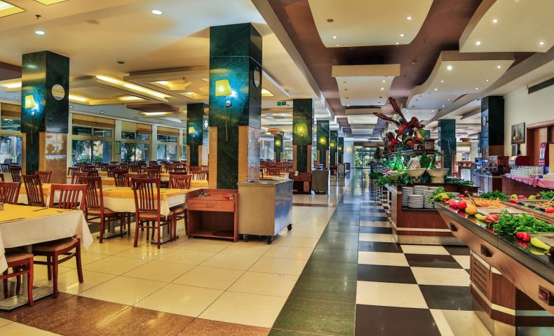 основен ресторант, 2 а-ла карт ресторант, 6 бара, откирт басейн, закрит басейн, 3 водни пързалки, спа салон, фризьор, 2 конферентни зали, безплатно: турска баня, фитнес, аеобика, баскетбол, аеробика, 2 тенис корта, тенис ракети под наем, баскетбол, анимации, безжичен интернет в лоби бар. платено - масаж, сауна, билярд, боулинг, осветление на тенис корт, кану, интернет кафе, водни спортове