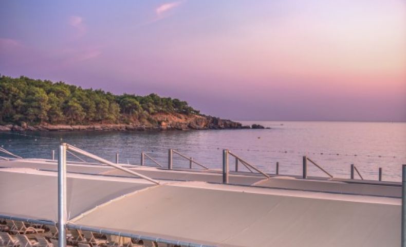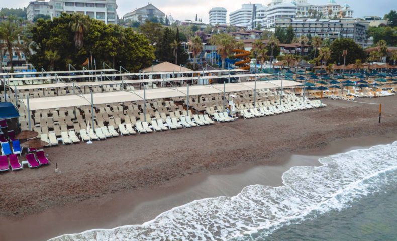 Собствен, пясъчно-чакълест, с дължина на плажната ивица 40м. Чадъри, шезлонги и плажни кърпи на плажа и при басейна – безплатно.