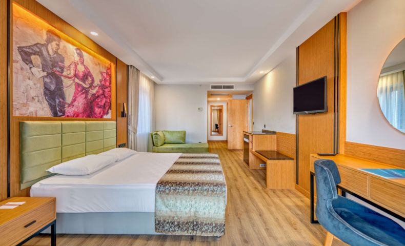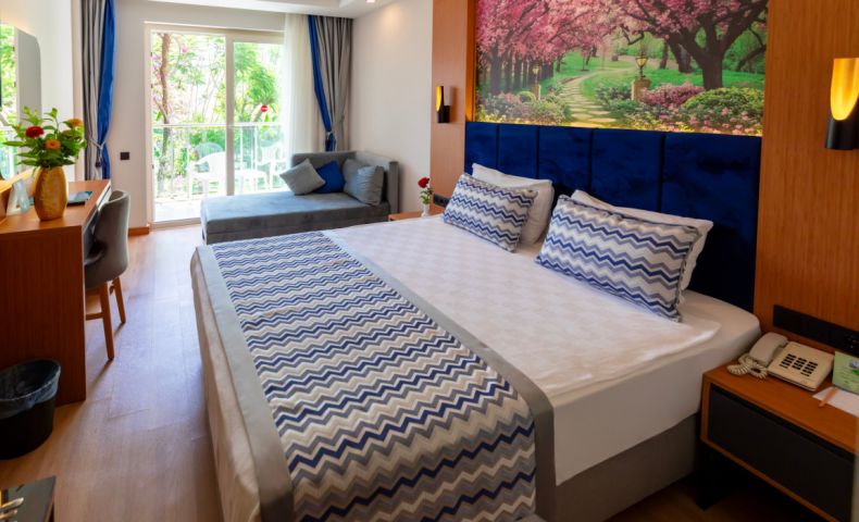 Хотелът разполага с общо 328 стаи, от които 239 стандартни стаи Standard Room Garden View (изглед градина – 20 м2), Standard Room Side Sea View (изглед частично море – 20 м2), 70 Large Room (изглед градина или страничен изглед море – 24 м2), 6 Duplex Family Room (2 спални, баня, изглед градина, 36-40 м2), 3 Family Sea View (2 спални, баня, изглед частично море, 36-40 м2).