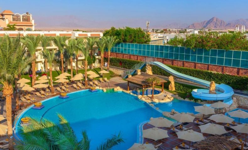 Хотелът е разположен на първа линия в района Sharks Bay в Шарм ел-Шейх, на около 10 минути с кола от летището и на 15 минути от Наама Бей. Има директен достъп до частен плаж с кей и възможност за шнорхелинг и гмуркане в богатия коралов риф.