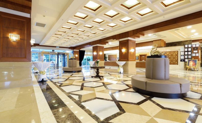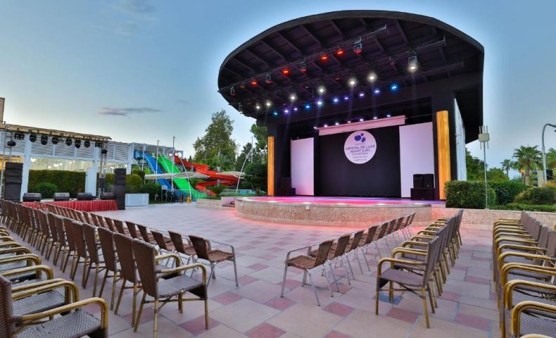 Основен ресторант, а - ла - карт ресторант (с предварителна резервация), 4 бара, 3 открити и 2 закрити басейна, водни пързалки, магазини, СПА център, дискотека, кино, конферентни зали, паркинг. За децата: Детска площадка, мини клуб (4-12 г.), 2 детски басейна – външен и вътрешен, водни пързалки, анимация. Безплатни услуги: Турска баня, сауна, джакузи, фитнес, дартс, тенис на маса, тенис корт (с предварителна резервация), баскетбол, аеробика, водна гимнастика, кино, жива музика, анимация, интернет. Платени услуги: Масаж, фризьор, търговски център, билярд, боулинг, джаги, интернет кафе (с предварителна резервация), видеоигри, химическо чистене, лекар, водни спортове, наем на топки и ракети за тенис, осветление за тенис корта.