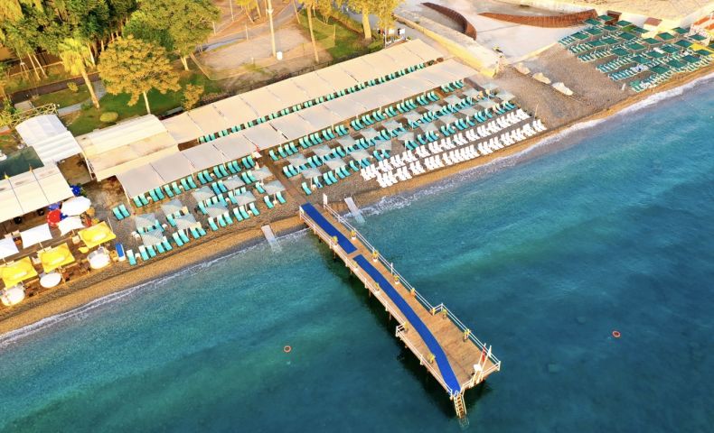 Собствен, чакълест плаж. Чадъри, шезлонги и матраци на плажа и при басейна – безплатно, плажни кърпи – срещу депозит.