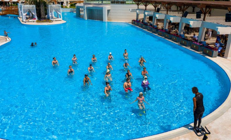 Безплатни услуги: Сауна, турска баня, парна баня, зона за релакс, фитнес, мини футбол, баскетбол, тенис корт, тенис на маса, плажен волейбол, водно поло, водна гимнастика, дартс, боча, билярд, бадминтон, табла, танци, табата, йога, стречинг, пилатес, степ зумба, канго джъмп, спортни тренировки, звукова терапия, жива музика, анимация, Wi-Fi (на цялата територия).