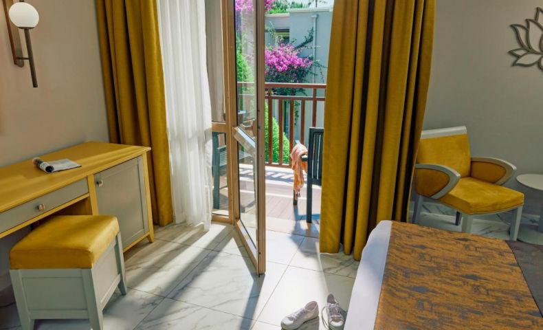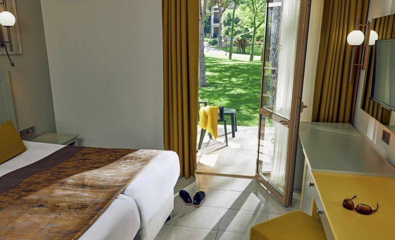 Хотелът разполага с общо 594 стаи, разположени в 20 дву и три-етажни къщички, от които 370 стандартни стаи Standard room (24 м2), 126 стандартни стаи с двуетажно легло Standard Room with Bunk Bed (24 м2), 92 фамилни стаи Family room (2 спални, 1 баня - 46 м2). Всички стаи са оборудвани с климатик, телевизор, телефон, баня с душ/вана, сешоар, чехли, минибар (вода, бира, безалкохолни напитки - безплатно), сейф (безплатен). Почистване на стаите - всеки ден, смяна на спално бельо и кърпи – 3 пъти в седмицата.