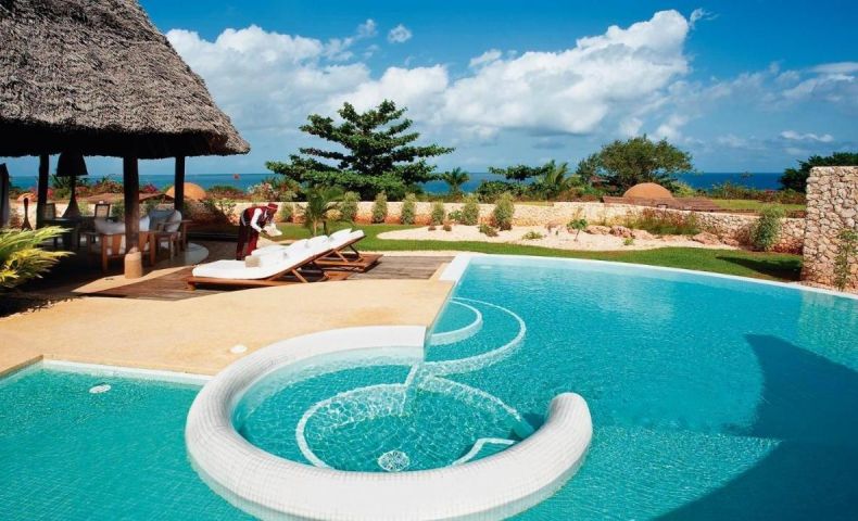 RIU Palace Zanzibar 5*е разположен на северозападното крайбрежие на Занзибар, на красивия плаж с бял пясък Нунгви. Град Стоун Таун е на 55 км от хотела. Хотелът Riu Palace Zanzibar се намира на красив плаж с бял пясък с кристални води и предлага на своите гости почивка на база ол инклузив с качеството на веригата RIU Hotels & Resorts В Riu Palace Zanzibar. На разположение на гостите са три басейна, СПА център, ресторанти и барове. За доброто насроение се грижи екип от аниматори, а вечер има музика на живо.Общите части и стаите разполагат с безплатен Wi-Fi.