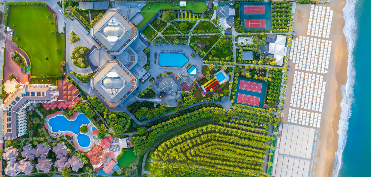 Основен ресторант, 1 а-ла-карт ресторант (турски – 1 безплатно посещение по време на престоя, с предварителна резервация), 2 снек ресторанта, сладкарница, 3 бара, витамин бар (срещу заплащане), дискотека, 2 открити басейна, 3 водни пързалки, СПА център, магазини, паркинг.