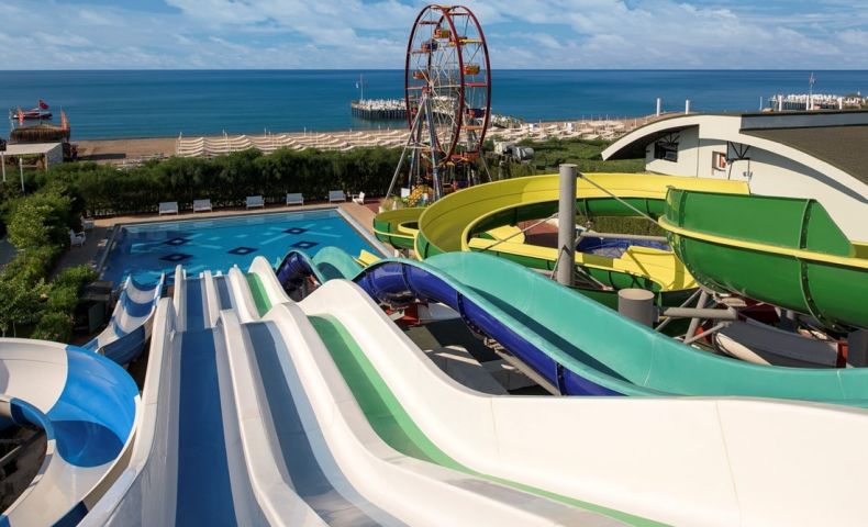 Основен ресторант, 8 а - ла - карт ресторанта (италиански, френски, гръцки, мексикански, далекоизточен, османски, рибен, ресторант месо и вино - с предварителна резервация, при минимум 7 нощувки - безплатно), 5 бара, 3 открити (оновен, релакс и с пързалки) и 1 закрит басейн, дискотека, аквапарк, лунапарк, СПА център, магазини, конферентна зала, Wi-Fi (безплатен).