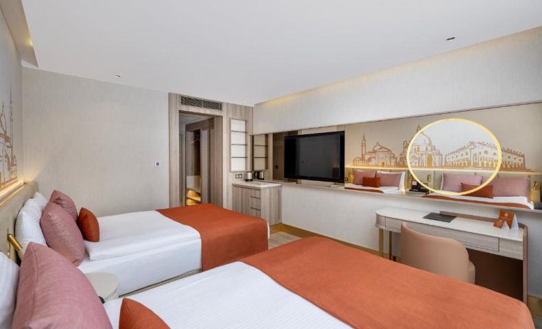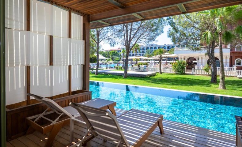 Намира се на 15 км от летище Анталия, на 20 км от центъра на Анталия, на 5 км от центъра на Лара, на брега на морето. Построен 2003г., на обща площ от 118 000 м2. Изцяло реновиран 2024-2025 г.