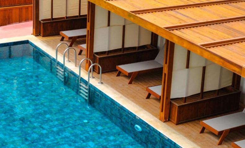 Собствен, пясъчно-чакълест, с дължина на плажната ивица 216 м. Чадъри, шезлонги и плажни кърпи на плажа и при басейна - безплатно.