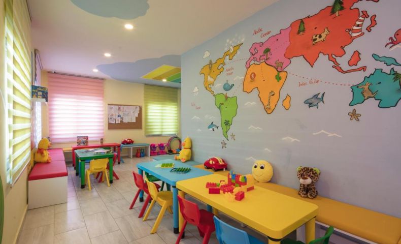 За децата: Детски бюфет, кът за приготвяне на бебешка храна, открит и закрит детски басейн, водни пързалки, мини клуб, детска площадка, мини диско, детска анимация, столче за хранене (безплатно, по заявка), детска количка (срещу заплащане).