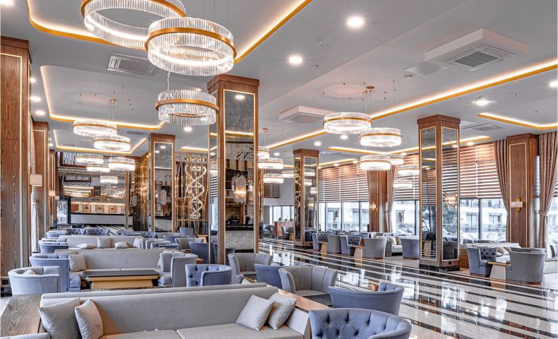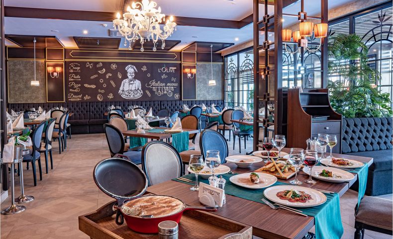 Основен ресторант, 2 а-ла-карт ресторанта (италиански и далекоизточен - 1 безплатно посещение на 1 от ресторантите при минимум 7 нощувки, с предварителна резерваия), 2 снек ресторанта, сладкарница, станция за сладолед и палачинки, 5 бара, кафетерия, диско бар, открит и закрит (отопляем) басейн, аквапарк, СПА център, магазини, конферентна зала.