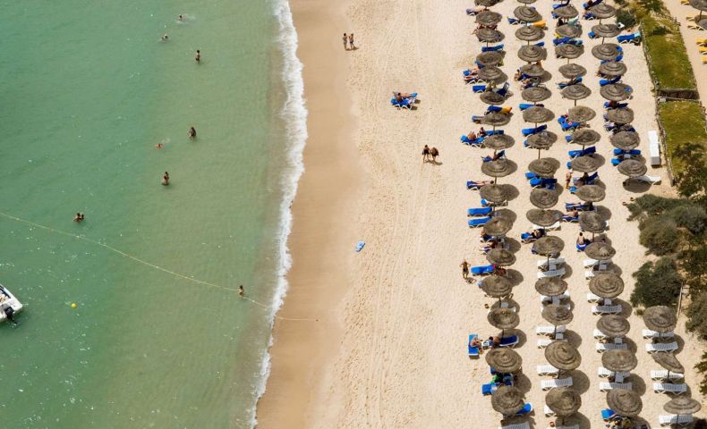 Собствен, широк, пясъчен и леко наклонен плаж, първа брегова линия. Чадъри, шезлонги, матраци и плажни кърпи на плажа и при басейна - безплатно.
