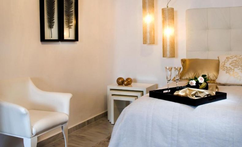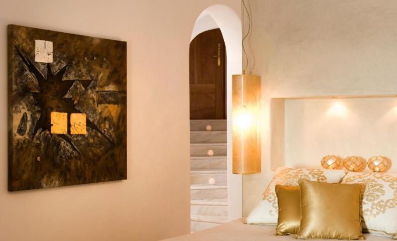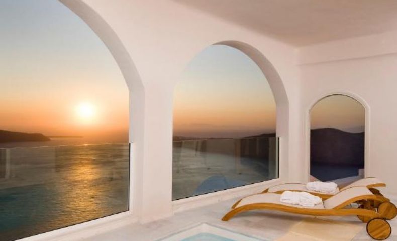 Климатик, телевизор, телефон, сейф в стаята, сешоар,  халати и чехли, тоалетни принадлежности Apivita (гръцка натурална козметика),  Мини бар Nespresso безплатно кафе,  Безплатен WI-Fi , собствена веранда, рум сервиз, гледка към калдерата. Размер 35 кв. м.