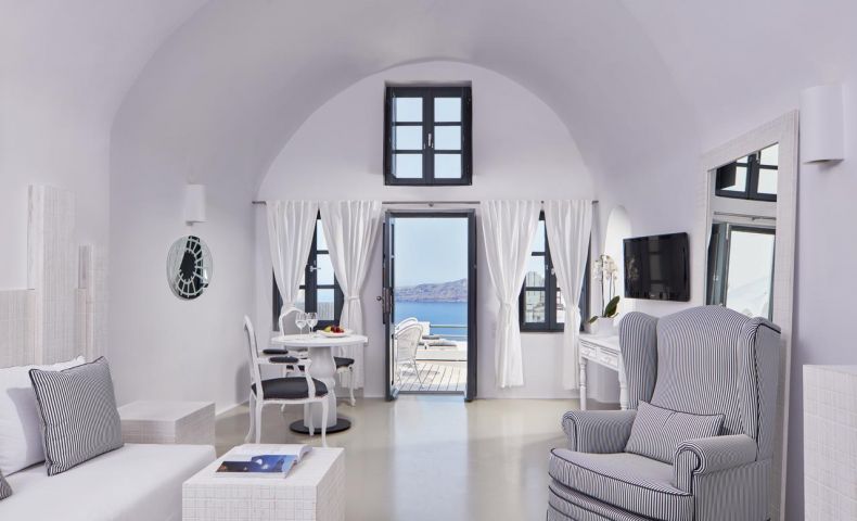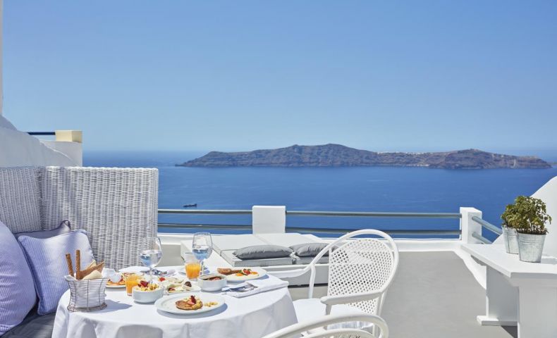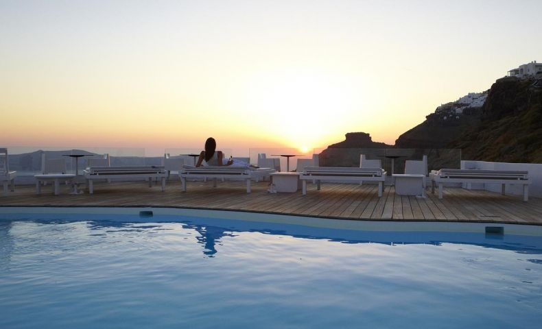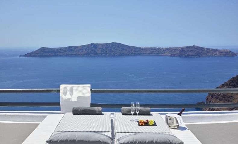 Хотел Katikies Sunrocks се намира в селището Фиростефани и предлага настаняване само за лица над 18г.