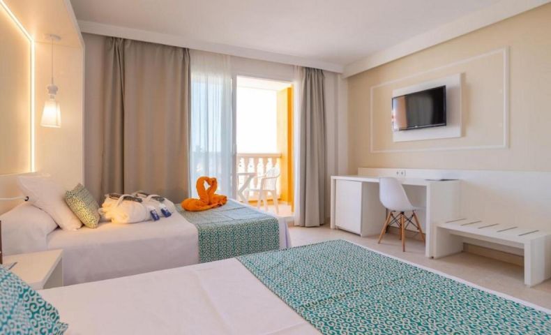 Семейства с деца — големи стаи с две големи легла, детски клуб, анимация и плитък пясъчен плаж пред хотела.